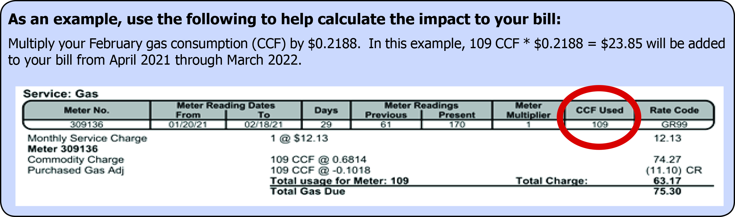The average residential customer’s annual natural gas bill is $600. The additional cost of the February natural gas is approximately $350 which is 68% of the annual bill. This will be spread out over 12 months beginning in April. The average residential customer will have approximately $30 added to their bill.